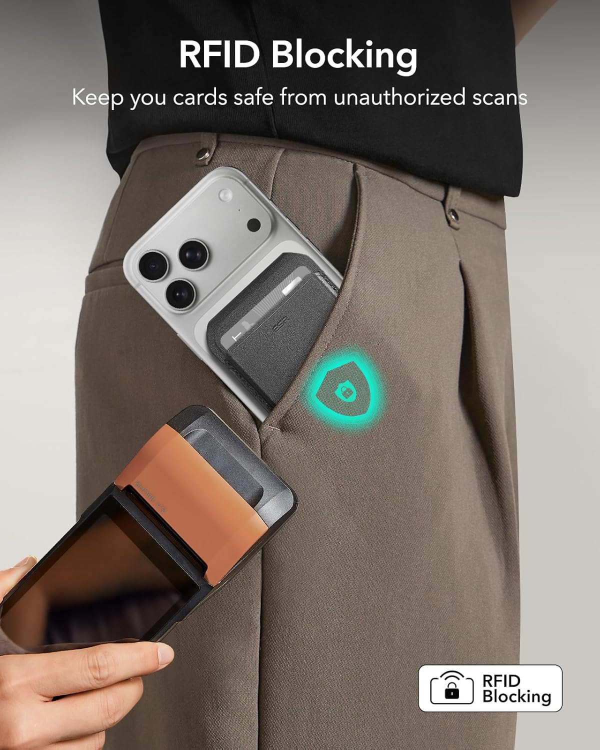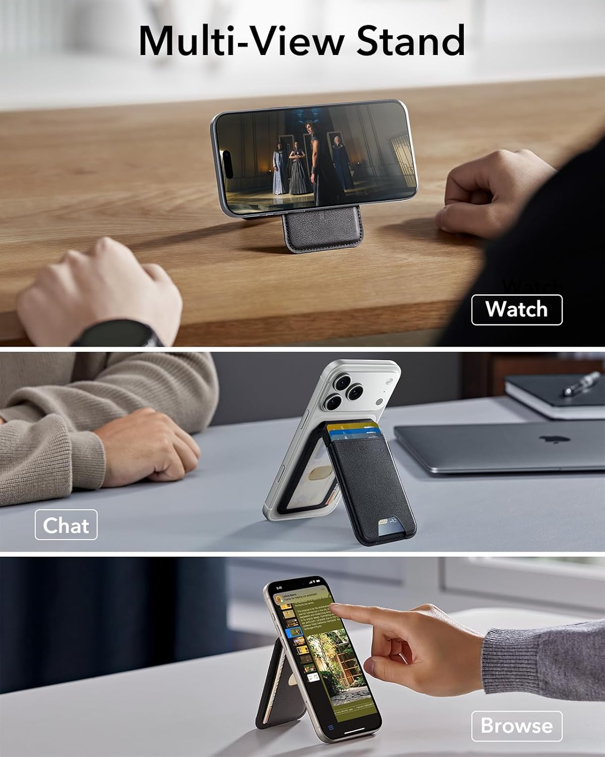 ESR HaloLock Vegan Deri Cüzdan Standı, MagSafe Cüzdan ve Ayarlanabilir Stand, iPhone 14/14 Plus/14 Pro/14 Pro Max ve 13/12 Serisi ile Uyumlu, 13/12 mini ile Uyumlu değil, 3 Kart Tutucu, Siyah
