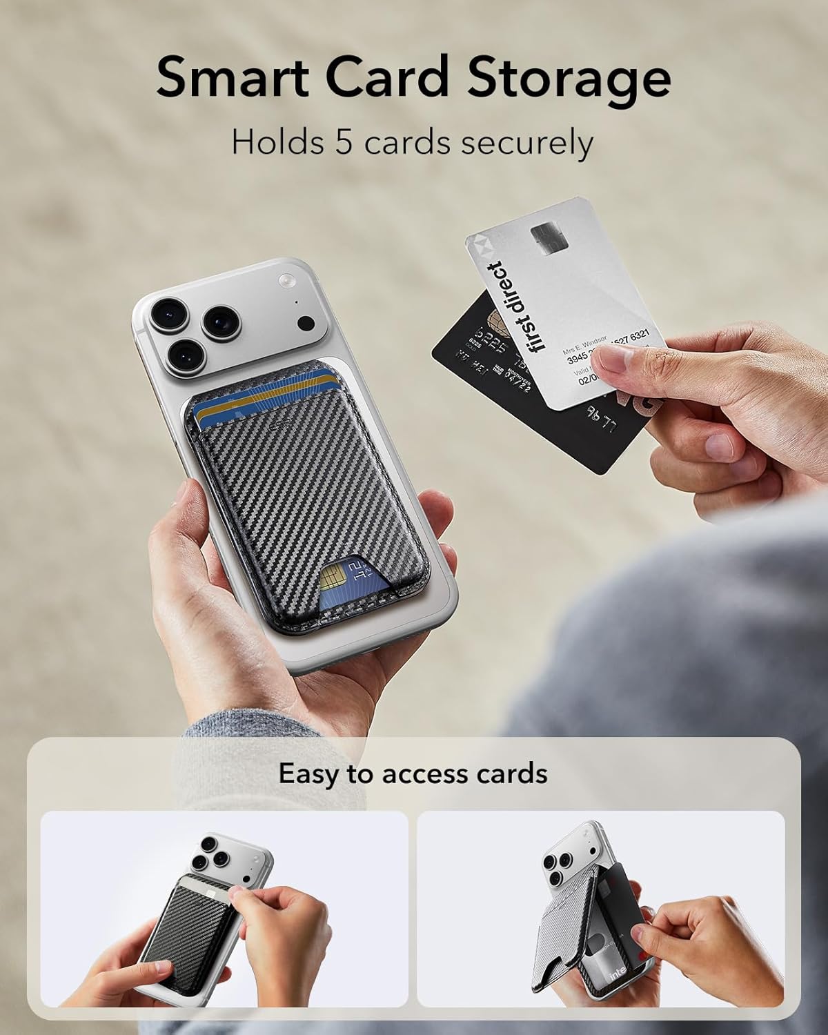 - Akıllı Kart Depolama: 3 ayrı kart yuvası, ihtiyacınız olduğunda ihtiyacınız olan karta hızlı ve kolay erişim sağlar; şeffaf pencere kimliğinizi hızlı ve kolay bir şekilde göstermenizi sağlar