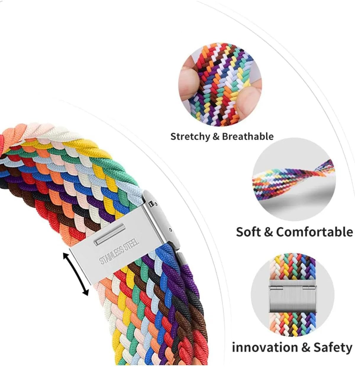 Huawei Watch Fit 3 ve Fit 4 Uyumlu Solo Metal Klipsli Fiberlink Örgü Kordon – Nefes Alabilir Hafif Tasarım, Manyetik Toka, Ayarlanabilir Paslanmaz Örgü Bileklik Kayış