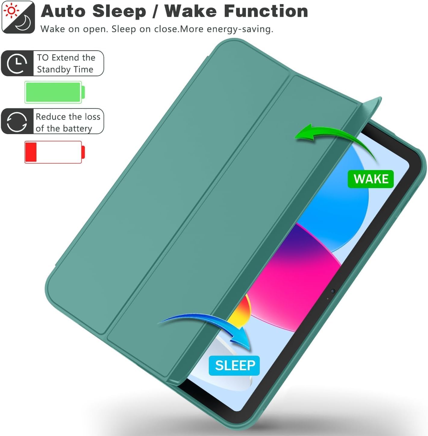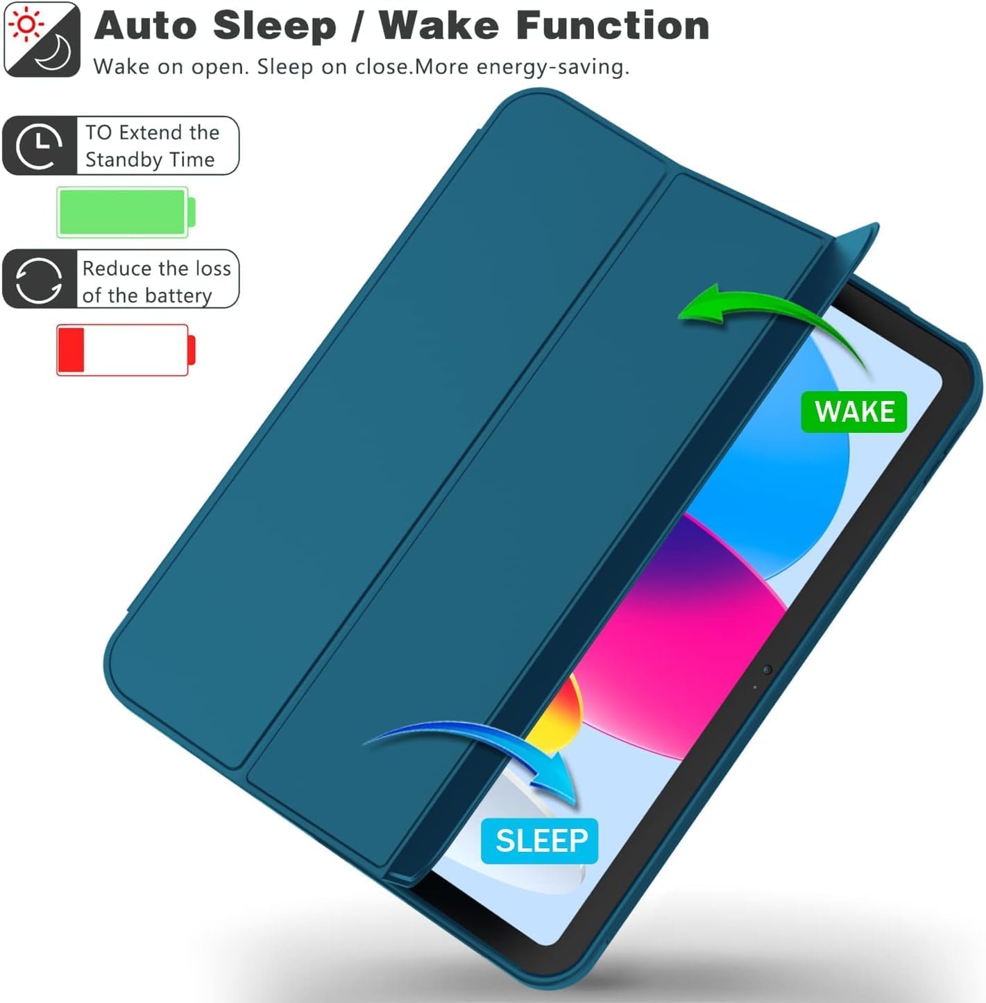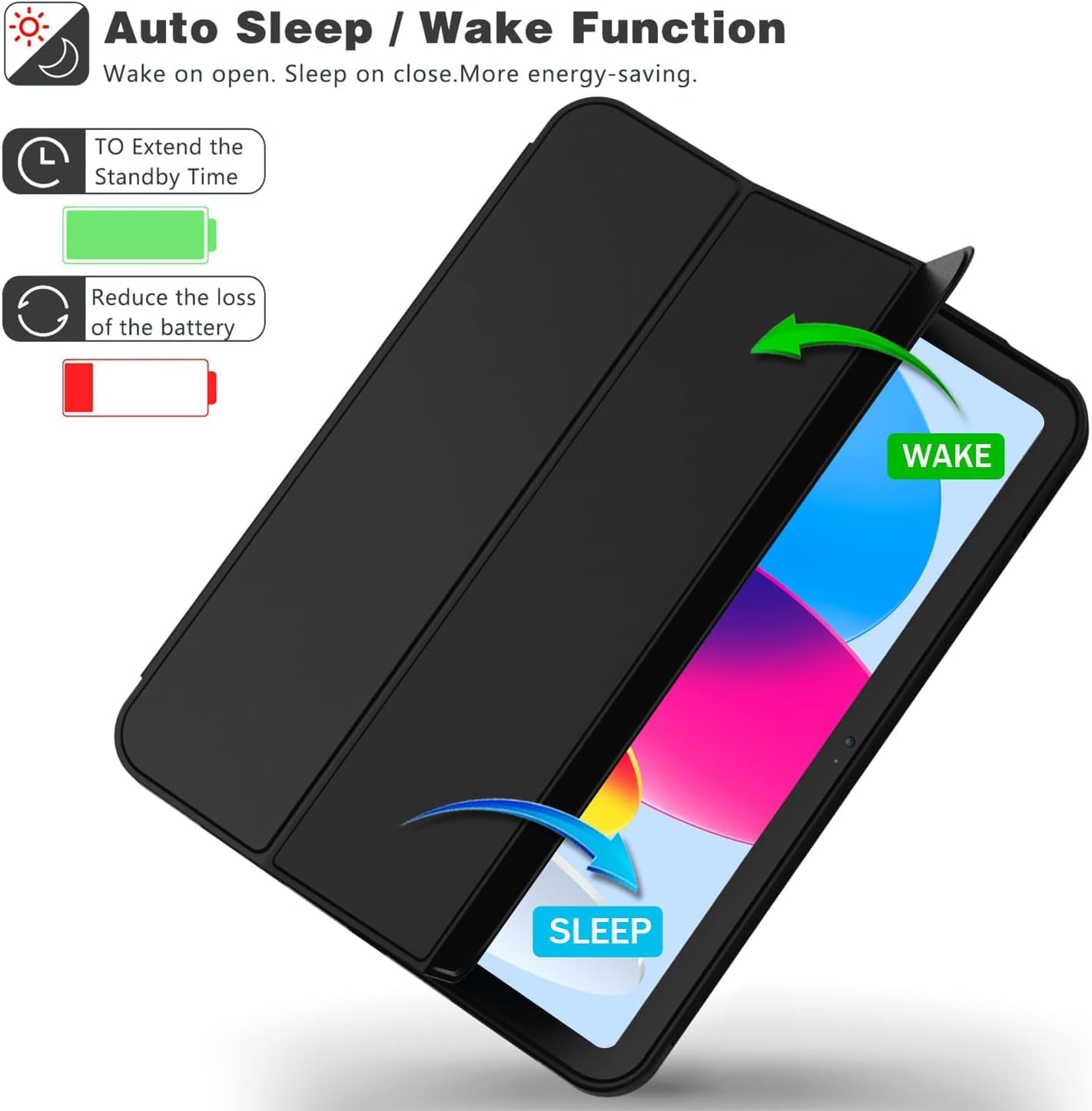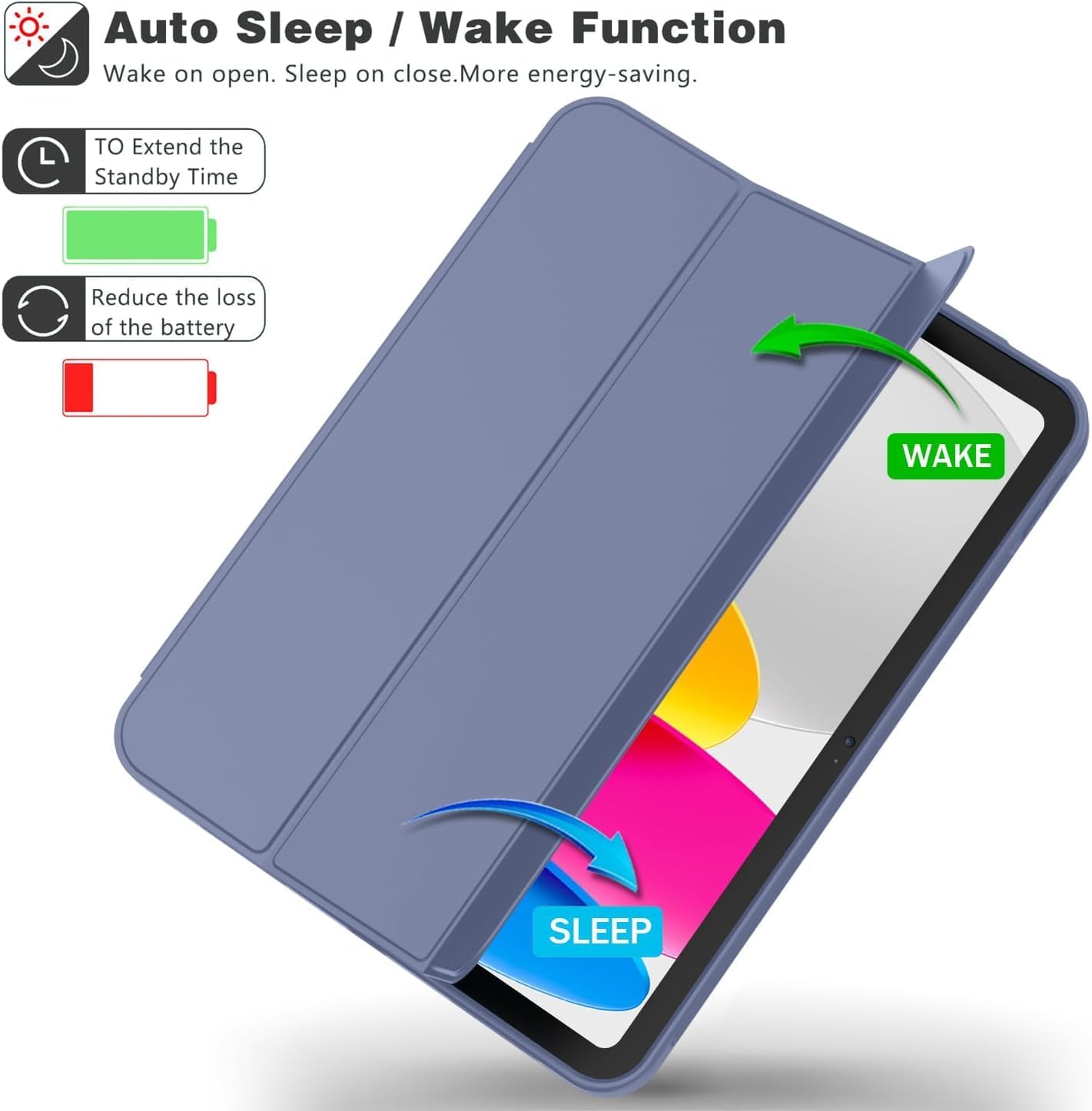 - [Otomatik Uyku/Uyanma Özelliği] – Manyetik akıllı kapak, otomatik uyku/uyanma fonksiyonunu destekler. Güçlü mıknatıs kapağı sabitleyerek kolayca takıp çıkarılmasını sağlar.