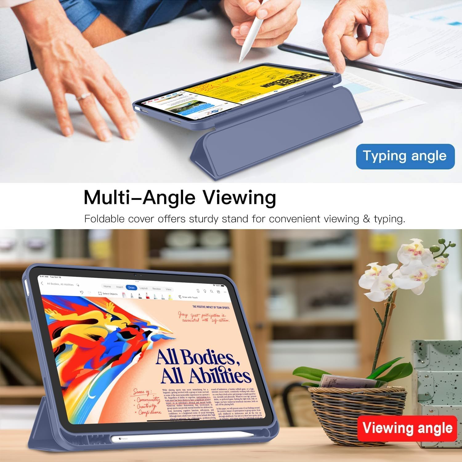 iPad 11. Nesil (11 inç, 2025) / iPad 10. Nesil (10.9 inç, 2022) ile Uyumlu Kılıf – Kalem Bölmeli, Üç Katlanır Standlı, Yumuşak TPU Arka Kapak, Uyku/Uyanma Özellikli Smart Cover (Lavander)
